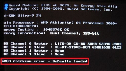 CMOS checksum error - Defaults loaded - как исправить ошибку