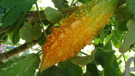 Момордика - редкое и очень интересное однолетнее растение (семейство тыквенных), относится к лазящим лианам. Стебель достигает в длину 3 метра, листья светло-зеленые, очень напоминают молодые листья винограда. Советы по выращиванию: Момордика хороша в оформлении балконов, беседок и т...