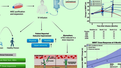 Джошуа Хэр (Joshua Hare) из Университета Майами и компании Longeveron с коллегами сообщил об успехе фазы 2b клинических испытаний лароместроцела при возрастной немощности. Это препарат аллогенных мезенхимальных стволовых клеток, полученных из костного мозга молодых здоровых доноров. В рандомизированных контролируемых испытаниях приняли участие 148 амбулаторных пациентов в возрасте от 70 до 85 лет с легкой или умеренной старческой немощностью (5–6 баллов по шкале CSHA-CFS) и дистанцией шестиминутной ходьбы от 200 до 400 метров...