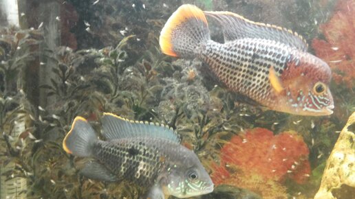 Крупные цихлиды очень хорошие родители, но до одного момента. Когда появляется икра - ее заботливо охраняют, мальки вылупились - за ними неусыпный контроль, чуть опасность - мальков собирают в рот и пережидают. В общем - идеальные защитники. И вот наступает день, ты подходишь к аквариуму а мальков нет...