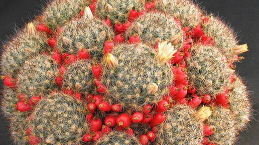 Маммиллярия обширный род кактусов включающий до 200 видов и множество разновидностей, отличаются окраской, формой и строением цветков. Растение миниатюрное с разнообразными колючками. Цветы появляются весной мелкие. У видов с мелкими цветами привлекательны красные ягоды, образующиеся там где были цветы. С выращиванием маммиллярий с мелкими цветами справится и начинающий цветовод. Летом необходимо обеспечить яркое освещение. Неплохо переносит даже сильную жару. Летняя температура от 20 до 23, зимой не выше 12 градусов(для интенсивного цветения)...