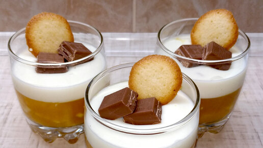 Удивите своих гостей простым, но очень вкусным и красивым десертом. 1. Желатин замочить в 100 мл. воды на 20 минут. 2. Апельсины очистить и порезать кубиками. 3. Разложить апельсины по бокалам. 4. 2/3 набухшего желатина развести в соке манго и слегка подогреть до растворения желатина. 5. Разлить манговый сок по бокалам и поставить в холодильник. Дождаться, когда сок достигнет состояния холодца. 6. Оставшуюся часть желатина развести в йогурте, слегка подогреть и разлить в бокалы аккуратно с помощью ложки, чтобы не повредить нижний слой...