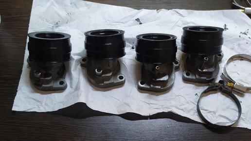 Многие владельцы старых мотоциклов ужасаются увидев цены на запчасти. Сейчас я вам обьясню - на фотографиях патрубки стоящие между карбюратором и цилиндром двигателя. Называются они манифол(ь)ды (не знаю как правильно с "Ь" или без). Со временем они рассыхаются и выходят из строя. Один такой патрубок новый стои от 9.000₽ х4шт +доставка, набор б/у патрубков стоит в районе 15.000₽ + доставка(ну тоже сомнительно брать такие детали), а можно сделать как я - нашёл в объявлении вот такие резинки напечатанные на 3д принтере из полиуретана за 2800₽ за 4 шт...