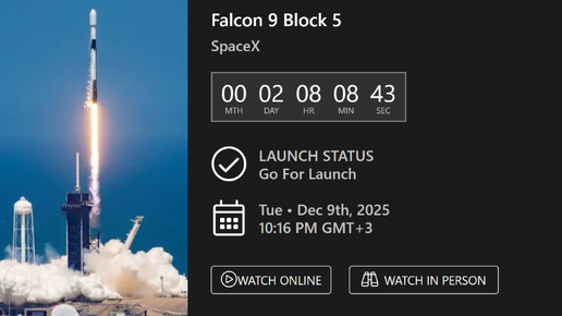 Всем известно словосочетание "парад планет". Понятие туманное: кто-то понимает это как расположение планет, выстроившихся цепочкой от Солнца, кто-то как расположение планет в определенной зоне неба, далекой от небольшого круга. однако выражение существует. А вот про парад космических стратов я не слышал. Но если это целых ПЯТЬ стартов в сутки, это "парад" или нет? Не знаю, будет ли эта цифра достигнута 9 декабря, будущее покажет, а пока посмотрим на прогноз (от 7 декабря): 1-й старт Миссия - Неизвестная...