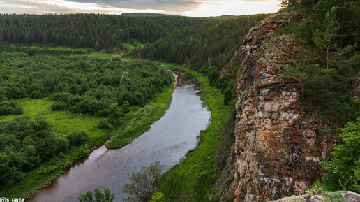 Марьин Утёс. Красивейшее место возле трассы М5! Высокая точка с видом на реку Катав. Добраться до Марьиного утёса и большой Усть-Катавской пещеры можно по трассе М5, если ехать от г. Усть-Катав в сторону Челябинска. Место находится в 100-200 метрах от трассы, но попасть сюда можно только двумя путями. Первым и самым правильным маршрутом, я считаю, остановиться напротив утёса на трассе М5, это нужно сделать до начала отбойника, который появится как раз чуть дальше утёса и призван удержать авто в случае ДТП от падения с обрыва...