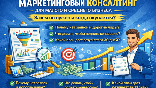 Если у вас есть сайт, реклама, CRM и даже “маркетолог в штате”, но заявки нестабильны, лиды дорожают, а решения принимаются на ощущениях — это типичная ситуация для малого и среднего бизнеса в России. В такие моменты помогает маркетинговый консалтинг: он не “заменяет” маркетолога или агентство, а наводит порядок в воронке, цифрах и действиях. В результате бизнес понимает, что делать в первую очередь, что не работает и куда уходят деньги. Ниже — простыми словами, но по делу: в чем польза маркетингового консалтинга, какие задачи он решает и как понять, что вам пора...