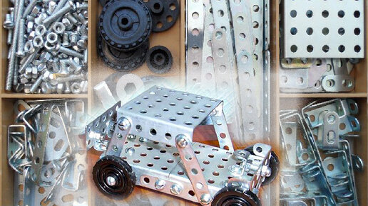 Советский железный конструктор. Мы были маленькими инженерами. Это было круче чем Лего. Вертолёт не собрал, но машину смог
