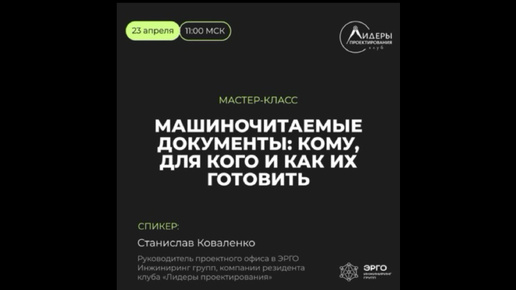 В проектных организациях требования к машиночитаемым документам становятся жестче и шире. У многих до сих пор нет понимания, кто должен готовить «схемы документов» и как перестать делать двойную работу. 23 апреля в 11:00 клуб «Лидеры проектирования» проведет открытый онлайн-мастер-класс «Машиночитаемые документы: кому, для кого и как их готовить?» Спикер: Станислав Коваленко, руководитель проектного офиса компании «Эрго Инжиниринг групп». Три высших образования, два из них связаны с проектированием и строительством...