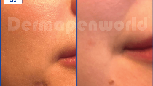 На фотографии до мы видим классический стероидный, атрофический рубец, вызванный врачебной ошибкой: двухкратным введением препарата «Дипроспан». Для стимуляции дермиса к высокой регенерации был использована проведена терапия Dermapen 4 в сочетании с бустером MG-HA35+. Поверхность атрофического рубца была обработана микроинъекционно, Dermapen 4 (cкорость 2200 микроинъекций в секунду, глубина 2.5мм). Dermapen 4 оказал стимулирующее действие не только на клетки дермиса, вырабатывающие межклеточный...