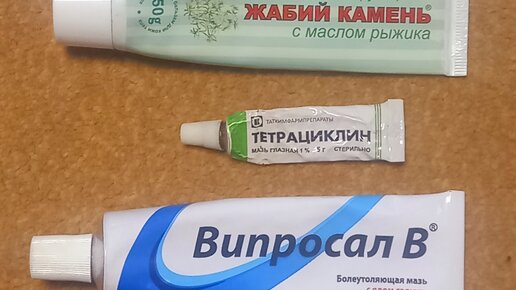 Жабий камень мне рекомендовала терапевт от шейного остеохондроза. Ещё эту мазь использую, когда спина начинала болеть. Намазал, надел пояс и на работу. Випросал пробовал мазать поясницу, не помогала. Однажды была простуда, болело горло и на третий день простуда пошла на бронхи. Думаю опять потом буду месяц кашлять. Решил намазать грудь, где были боли. Лёг спать хорошо укрывшись. Пропотел, как следует и боль ушла и кашля не было. Тетрациклиновую мазь использую после, как при ОРВИ выпишут капли Грипп Ферон, и потом в ноздрях начинаются болячки...