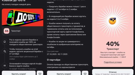 🎱 НАПОМИНАЛКА: крутим барабан кэшбэка на транспорт в Альфе