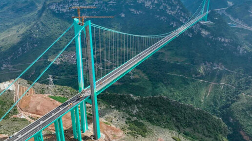 В Китае завершили строительство самого высокого в мире моста — инженерного гиганта, перекинутого через Гранд-каньон Хуацзян, который местные жители называют «трещиной в земле». Высота дорожного полотна — 625 метров над рекой Бэйпань. Это почти вдвое выше Эйфелевой башни. Мост ставит новые рекорды в этом мире, а ещё там очень красивые виды и возможность проехать через облака. Мост длиной 2890 метров соединяет районы Лючжи и Аньлун в провинции Гуйчжоу. Если раньше путь занимал около 2 часов, теперь поездка через каньон займёт всего 2 минуты...
