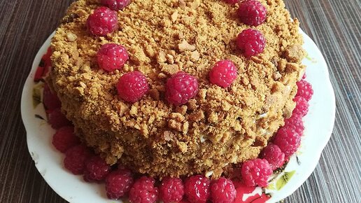 Медовик с малиной и нежно сливочно-творожным кремом