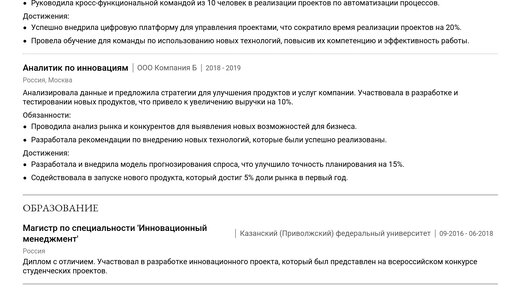Пример резюме менеджера по инновациям 2025 - Как составить