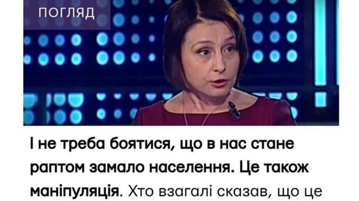 «И не нужно бояться, что у нас вдруг станет меньше населения. Это тоже манипуляция. Кто вообще сказал, что это благо для страны — иметь высокую численность населения? А вдруг наоборот, просторная и малонаселенная территория будет более приемлемым жизни местом? Каково? Так что, дорогие украинцы, не следует переживать, если ваш отец, муж или брат погибнет за англосаксов, вам лучше будет — достанется больше простора в стране 404...