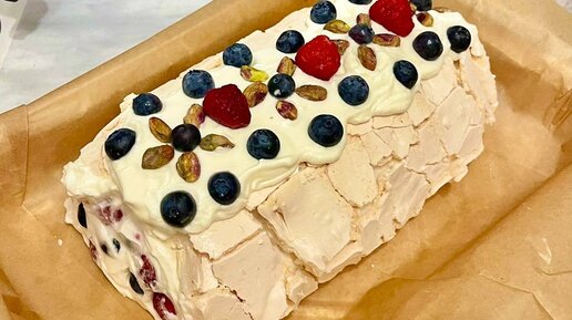 Очень вкусный, тающий во рту меренговый рулетик с фруктами. Если соблюдать все детали, получится с 1 раза, даже если до этого никогда не готовили десерты. Ингредиенты: Меренга, Яйца (белок), Сахарная пудра, Лимонный сок, Кукурузный крахмал, Соли, Крем, Маскарпоне, сливки 33%, Сахарная пудра, Начинка, Фисташки, Малина, Голубика, Клубника, Любые фрукты на свой вкус Способ приготовления: Для меренги все ингредиенты комнатной температуры, это важно! Если взять яйца из холодильника-не получится Посуда для приготовления-миска, миксер должны быть абсолютно сухими...