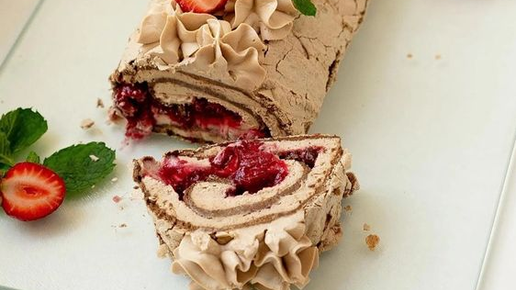 Меренговый рулет — это нежный и воздушный десерт из свернутой меренги, наполненной кремовой начинкой, фруктами или ягодами. В порции на 100 г содержится около 290 ккал, а приготовление занимает примерно 1,5–2 часа [1]. Меренга (или же безе) — это кондитерское изделие из запеченных взбитых белков с сахаром [2]. Основное отличие между меренговым рулетом и безе — в текстуре и подаче: рулет остается мягким внутри и сворачивается с начинкой, а безе полностью пропекается до сухого и хрустящего состояния...
