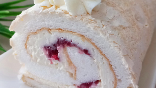 Нежнейший меренговый рулет со сливочно-творожным кремом и малиновым желе