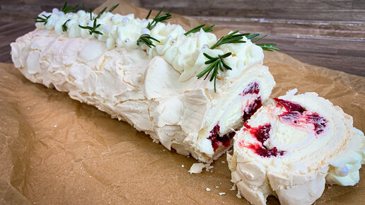 МЕРЕНГОВЫЙ РУЛЕТ (Рецепт с крем чизом и вишней) Божественный десерт