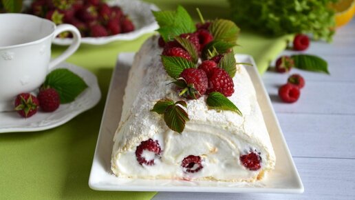 Рецепт меренгового рулета в домашних условиях, с малиновой начинкой. Пальчики оближешь от такого десерта!