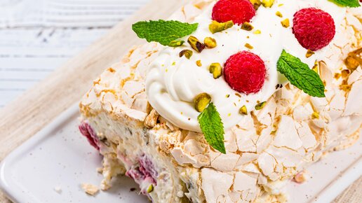 Меренговый рулет — воздушный хрустящий десерт. Добавьте малину в начинку и дополните кремом из сыра маскарпоне. Лёгкая кислота от малины прекрасно дополняет сладость меренги. Меренговый рулет — воздушный хрустящий десерт. Добавьте малину в начинку и дополните кремом из сыра маскарпоне. Лёгкая кислота от малины прекрасно дополняет сладость меренги. Меренговый рулет словно тает во рту, но при этом сохраняет свою хрусткость, даже когда соседствует с кремом и ягодами. Этот десерт невероятно воздушный и лёгкий...