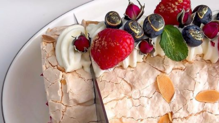 Приготовила меренговый рулет с фисташковым кремом и малиновым конфи дочкам на завтрак, пока они умывались и заплетались