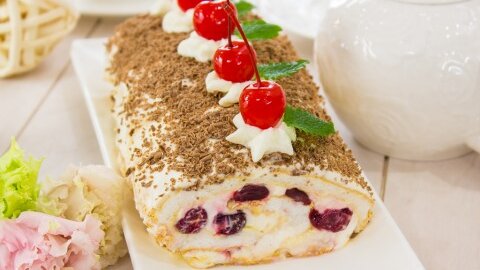 Меренговый рулет с вишней! Нежный десерт! Самый вкусный десерт!