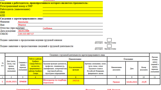 💡 В этой статье - подробная инструкция, как формировать коды выполняемых функций из Общероссийского классификатора занятий, которые введены в форму с 1 июля 2021 года, и корректно заполнить СЗВ-ТД. 💡 Как всегда всё меняется. ПФР опубликовал новый бланк СЗВ-ТД, порядок заполнения и электронный формат. Что же нового с 1 июля 2021 года в СЗВ-ТД. Ниже Вы можете посмотреть и скачать обновленный бланк, где появившиеся графы и строки отмечены желтым цветом, а также сам бланк. Новая форма СЗВ-ТД.docx ← скачать Инструкция по заполнению...