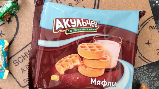 Я люблю пить кофе с вкусняшками, думаю тут я не одинока. Поэтому в магазине я часто зависаю возле полок со сладостями. В этот раз выбор пал на МЯФЛИ! Мяфли - это мягкие вафли. Производитель "Акульчев" Татарстан. Сразу подкупило, что вафли без пальмого масла. Это приятно, сейчас трудно найти продукты без его добавления. Да и упаковка, достаточно выделяющаяся на полке. Цена по акции - 44,9 руб за 125 гр. Сравнительно недорого. Читаем состав: