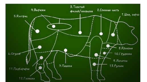 Сохраните эту статью и не теряйтесь в многообразии мяса на рынке и в магазине! Хорошая хозяйка должна знать, какое мясо как готовить, ведь это залог вкусного блюда. Определенные части туши отлично подходят для жарки, другие для фарша, третьи только для бульона. Сохраните эту статью и не теряйтесь в многообразии мяса на рынке и в магазине! 1. Шея, зарез (сорт 3) Содержит сухожилия, но имеет хорошие вкусовые качества. Подходит для варки (в том числе и длительная), тушения. Блюда: заправочные супы и бульоны, фарши, котлеты, гуляш, чолнт, холодец (студень)...
