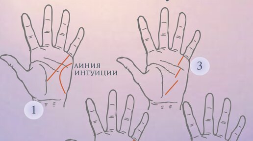 Высшее проявление линии Меркурия на руке – это Линия Интуиции (1) и она может быть на ряду с простой линией Меркурия. Линий Меркурия может быть и несколько на руке, до пяти. Благоприятным считается до трёх линий, при условии, что они одинаковы, ровно идут и обозначают разностороннюю личность. (2) Больше трёх – чрезмерная суетливость, «всеядность» и такой знак считается неблагоприятным. Классическая хиромантия говорит, что Линия Меркурия начинается снизу-вверх (3). В связи с этим можно сказать, что линия Меркурия может иметь интенсивность в разных частях ладони...