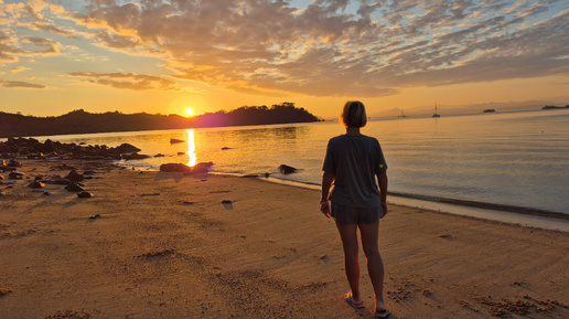 И третью ночь на Нуси бе мне спалось неважно, всё-таки ночёвки в лесу - это не моё, и пусть мне очень нравится это место, но жить без электричества, без горячей воды, без двери в туалет, а главное, среди дикой природы с ее ночными звуками мне удаётся с трудом. В два ночи я проснулась, в пять уже не спала и ждала время восхода - мы договорились с мужем, что пойдём встречать солнце. В 5.45 вышли на берег, но опоздали, надо было минут на 5 раньше, потому что солнце уже начало подниматься, а не только собиралось появиться...