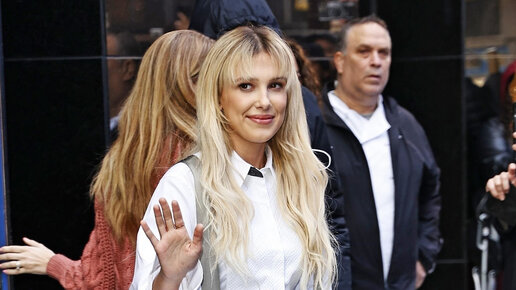 Милли Бобби Браун презентует новый фильм «Энола Холмс 2» и активно посещает различные мероприятия. На одно из ток-шоу селебрити надела атласные брюки с широкими штанинами на подтяжках. Образ дополнила укороченная рубашка и классические лодочки на каблуке с острым мысом...