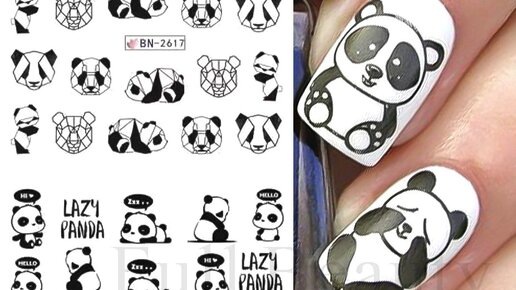 Милый рисунок панды стикер для дизайна ногтей водная наклейка