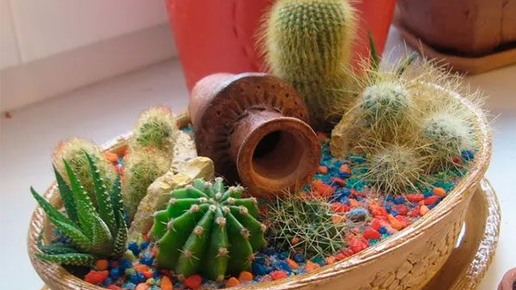 Самый простой Мини-сад из кактусов в плошке: инструкция для модного декора