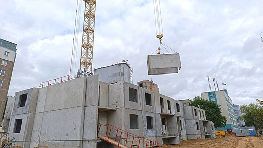 Блоки комнат собирают прямо на заводе. В столице Беларуси применили новый максимально быстрый способ возведения жилых домов. Чем еще необычна застройка на ул. Серова, рассказали в "Минскстрое". Новый жилой квартал решили собирать как пазл. На объекте идет лишь установка блоков-комнат, которые изготавливаются на заводе. Это самая быстрая технология в строительстве. Важный элемент такого метода – работа крановщиков, которым нужно очень точно размещать блочные конструкции. Каждая из них весит по 16 т...