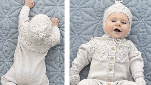 Внимание! Все размеры даны для готового изделия = снятые мерки + припуски на свободу движения. ВАМ ПОТРЕБУЕТСЯ Пряжа Sandnes Garn Babyull Lanett (100% мериносовой шерсти; 175 м/50 г) кремового цвета (Putty № 1015) – 4 (5–5) 6 мотков для комбинезона, по 1 мотку для каждого размера шапочки, носков и митенок; круговые спицы № 2 и 2,5; чулочные спицы № 2 и 2,5; маркеры для разметки петель. УЗОРЫ И СХЕМЫ ЛИЦЕВАЯ ГЛАДЬ Лицевые ряды – лицевые петли, изнаночные ряды – изнаночные петли; в круговых рядах все петли вязать лицевыми...