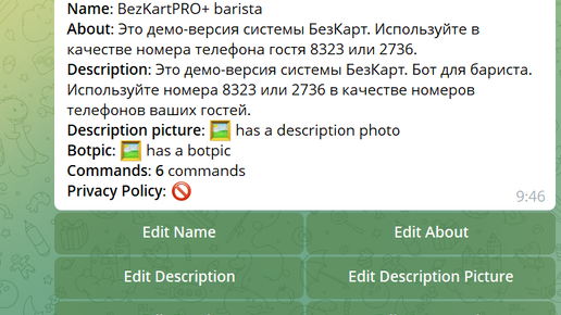 5. Иконка бота Все это можно указать в настройках вашего бота в @BotFather. Настройки telegram-бота На скриншотах вы можете увидеть как каждая настройка отображается в вашем боте. Цифры на скриншотах соответствуют порядковому номеру настройки в списке выше...
