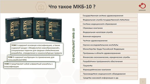 Международная классификация болезней и проблем, связанных со здоровьем МЕЖДУНАРОДНАЯ СТАТИСТИЧЕСКАЯ КЛАССИФИКАЦИЯ БОЛЕЗНЕЙ, ТРАВМ И ПРИЧИН СМЕРТИ (ЖЕНЕВА, 1995). МКБ – это система группировки болезней и патологических состояний, отражающая современный этап развития медицинской науки. В Российской Федерации МКБ-10 принята приказом Минздрава России от 27.05.97г. N 170 как единый нормативный документ для формирования системы учета и отчетности в здравоохранении. Эта классификация используется В 1999 г...