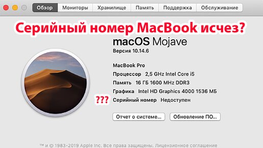 Попал к нам ноутбук Apple c проблемой – пропал в меню «Об этом Mac» серийный номер устройства, вместо него красуется надпись «Недоступен». Бог бы с ними, с цифрами, но перестали работать iMessage, FaceTime, iCloud и прочие сервисы синхронизации Apple. Есть всего три пути решения: 1. Обратиться в авторизованный Сервисный центр Apple, 100% результат, часто дорого и часто долго. 2. Обратиться в СЦ по ремонту ноутбуков, почти 100% результат в зависимости от опыта мастера, часто не очень дорого, возможно даже быстро...