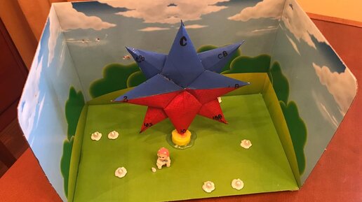 Задание по окружающему миру для 2 класса: придумать и изготовить модель стороны горизонта. Основные стороны горизонта – север, юг, запад, восток. Кроме основных необходимо было указать также промежуточные: северо-запад, северо-восток, юго-запад, юго-восток. (стр.71 учебника) Для изготовления модели из пятиконечных звезд (покупала на новый год бумажные в Kuchenland home) сделали...