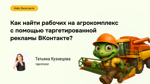Привет! Мы — агентство таргетированной рекламы «В точку». В этом кейсе мы расскажем, как мы привели 714 кадров для агропредприятия благодаря таргетированной рекламе ВКонтакте за 10 месяцев. Информация о проекте Клиент Крупное предприятие, занимающееся комплексным развитием сельского хозяйства и животноводства на территории России. Компания объединяет несколько подразделений в Московской и Смоленской областях и постоянно расширяет штат специалистов рабочих профессий. Задача Привлечь новые кадры по вакансиям: оператор свинокомплекса, слесарь, комбайнер, тракторист, водитель, токарь-универсал...
