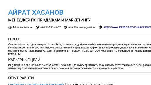 Как написать резюме специалиста по продажам и рекламе в 2025 году