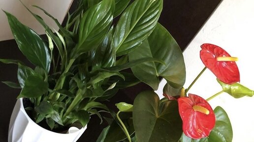 А вы задумывались, как цветы влияют на нас? Есть поверье о «женском и мужском счастье» — если эти два цветка поставить рядом, то в паре наступит гармония, семью минуют раздоры, а все соперницы пройдут мимо. Правда это или нет, каждый решает для себя сам. Я хоть и скептически отношусь к категорическим утверждениям, но в хорошие приметы и поверья склонна верить, на плохие – просто не обращаю внимания. Схожесть этих растений бросается в глаза всем, кто хоть раз их видел: кожистые зеленые листья и соцветия-паруса...