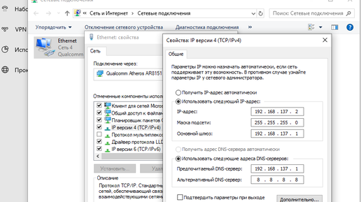 Работу некоторых сетевых функций ноутбука или обычного компьютера можно организовать с помощью встроенных средств операционной системы. Бывает, что компьютер, на котором удобно работать, находится вне зоны покрытия Wi-Fi. В этом случае выручит ноутбук, настроенный на приём беспроводного интернета и передачу его на основной компьютер кабелем Ethernet. Ноутбук легко разместить ближе к точке доступа Wi-Fi и передать интернет на рабочий комп. Настройка следующая. На ноутбуке: Клик ПКМ на значок сети...