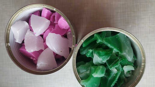 Жила-была девочка Оля и любила она свечки жечь. Часто от них оставалось много воско-парафина и она их выбрасывала. Но посмотрела цены на новые свечи и жалко стало... Дано: остатки от 2х белых свечей, остатки от 2х зеленых свечей и мелкие скорострелы розовые. Ну и пара стаканов от старых свечей. Взяла я жестяные банки от горошка, благо брат их собирает и в металлолом увозит у работы. Поделила примерно пополам воск оставшийся. Тут надо фитили и железки убрать не забыть и помельче покрошить, чтобы...