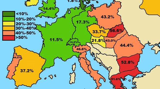 С каждым годом в Европе увеличивается количество людей, живущих вместе с родителями. Сегодня мы узнаем, какие страны лидируют в этом антирейтинге и разберемся с причинами данного явления. Как мы можем наблюдать из карты, красным цветом помечены государства, где количество молодежи, не покидающей родительский дом, превышает 50%. На первом месте Словакия, на втором Болгария, а на третьем Греция. Меньше всего проблема проявляется с Скандинавских странах. Норвегия, Швеция, Финляндия и Дания отличаются наиболее низкими показателями: 4...