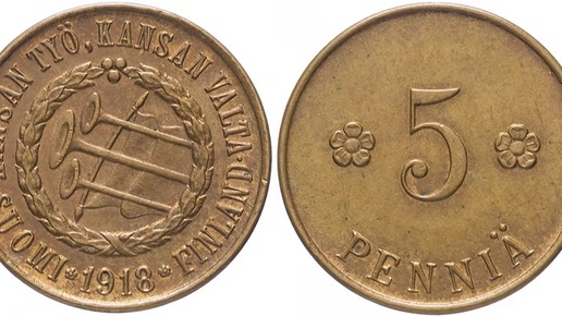 Первые монеты независимой Финляндии. История финской валюты началась с пяти пенни, которые появились в период существования Финляндской Социалистической Рабочей Республики. Этот короткий, но насыщенный событиями этап стал отправной точкой для формирования национальной идентичности Финляндии. После обретения независимости в 1917 году, когда Россия, ослабленная революцией, предоставила Великому княжеству Финляндскому свободу, казалось, что власть Советов неизбежно распространится и на эту территорию...