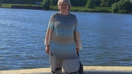 Вязанное платье "Морской прибой" Это платье я вязала с мечтами о море. Море в этом году не состоялось, а платье да. Связано оно из ниточки YarnArt Flovers. Цвета нити напоминают морской берег: песок, голубую воду и серую гальку. Мне понадобилось две бобики этой великолепной ниточки. Одну я вязала прямо из бобинки, а вторую перемотала и вязала в "обратном направлении". Из центра бобинки отмотала два перехода цвета на рукава. Пока я не умею вставлять схемы, буду описывать, благо данный узор прост...