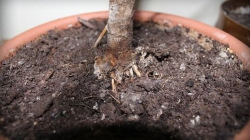 В верхних слоях грунта цветочных горшков и кашпо.